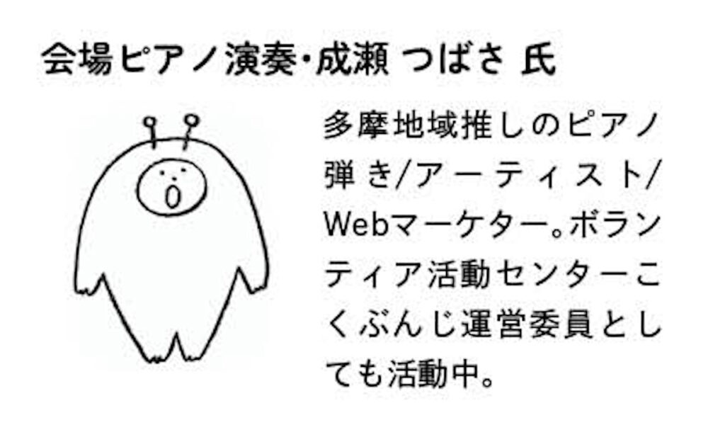 パンフレット上では「多摩地域推しのピアノ弾き」としてご紹介いただいております。