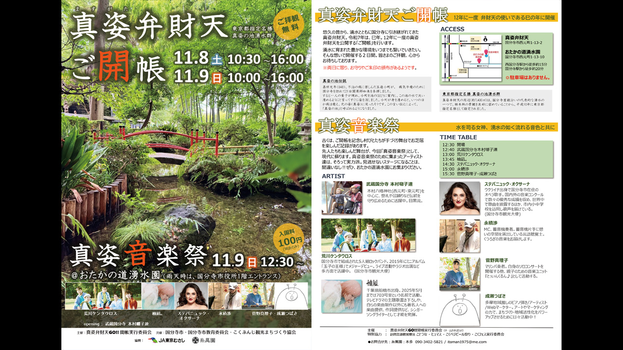 2025年11月9日(日)、国分寺市内の「真姿弁財天」ご開帳に合わせて開催される音楽イベント「真姿音楽祭」に、ピアノ演奏で出演します!
